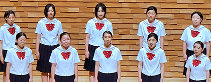 通常の音楽の授業に加えて、週に1度、特別活動としてコーラスに取り組んでいます。歌に豊かな感情を込める表現活動の一環です。「合唱祭」「歳末チャリティーコーラス・コンサート」といった大会のほか、入学式や卒業式など大切な学校行事、また東北交流活動でもその歌声を披露しました。